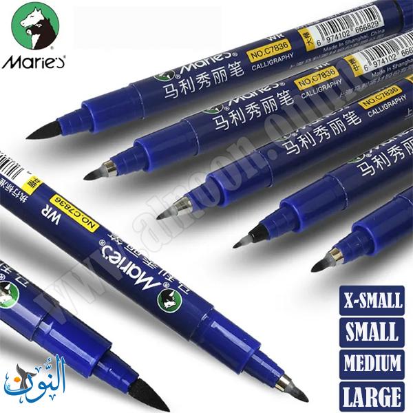 قلم الفرشاة للخط من ماريس (Maries) يأتي بلون أسود وبأربعة قياسات مختلفة: صغير جدًا (X-Small)، صغير (Small)، متوسط (Medium)، وكبير (Large)، مما يتيح مرونة عالية في التحكم بسماكة الخطوط وتنوع الأساليب بين الكتابة الدقيقة والخطوط العريضة. يتميز الحبر الأسود بجودة عالية وتدفق سلس يمنحك كتابة نظيفة دون تقطع أو تلطخ، في حين يوفر تصميم القلم المريح ثباتًا وتحكمًا مثاليًا أثناء الاستخدام. يُعد هذا القلم مناسبًا لفنون الخط العربي واللاتيني، الزخرفة، التصميم الإبداعي، كما أنه خيار ممتاز للتوقيع بخط أنيق وواضح