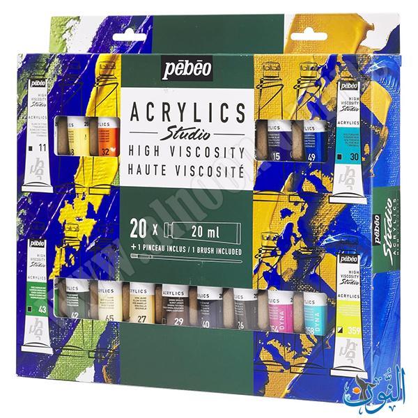 طقم ألوان أكريليك Pebeo Studio – 20 لون × 20 مل + فرشاة يوفر مجموعة ألوان متنوعة وعالية الجودة للفنانين والهواة، مع قوام أكريليك عالي اللزوجة مناسب للرسم بطبقات وحتى للعمل بأبعاد وملمس واضح. الألوان تجف بسرعة وتترك لمسة نهائية ساتانية غير لامعة مع قدرة جيدة على الاحتفاظ ببصمات الفرشاة أو السكين عند الحاجة، ويمكن استخدامها مباشرة من الأنبوب أو خلطها معًا للحصول على درجات مخصصة وتأثيرات متعددة. الطقم يشمل فرشاة واحدة لبدء العمل مباشرة، ويمنحك مجموعة ألوان غنية وقابلة للدمج على الورق، القماش، الخشب والأسطح الفنية الأخرى، مما يجعله خيارًا ممتازًا للمبتدئين والفنانين في المشاريع الإبداعية المختلفة