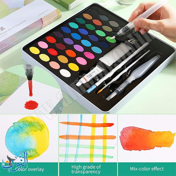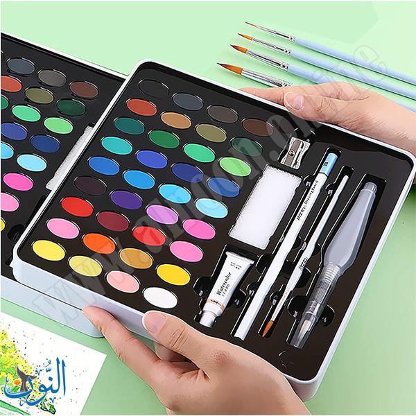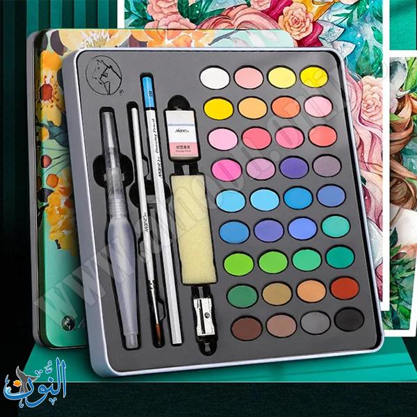 طقم الألوان المائية الصلبة من ماريس (Marie’s) يتميز بجودة عالية وألوان زاهية نابضة بالحياة، مما يجعله مناسبًا للفنانين المبتدئين والمحترفين على حد سواء. يأتي الطقم في علبة أنيقة وعملية، ويحتوي على مجموعة متكاملة من الأدوات الفنية تشمل: فرشاة تقليدية، فرشاة مائية، أقلام خشبية، ممحاة، مبراة معدنية، إسفنجة، وأوراق للرسم بالألوان المائية، مما يجعله مثاليًا للاستخدام في المنزل أو أثناء التنقل. يتميز التصميم بخفة الوزن وسهولة الحمل، ويُعد خيارًا ممتازًا كهديّة فنية للأطفال والكبار. الألوان آمنة وغير سامة وتطابق معايير السلامة. يتوفر الطقم بخيارين من حيث عدد الألوان: 36 لونًا و48 لونًا لتلبية مختلف الاحتياجات الفنية.
