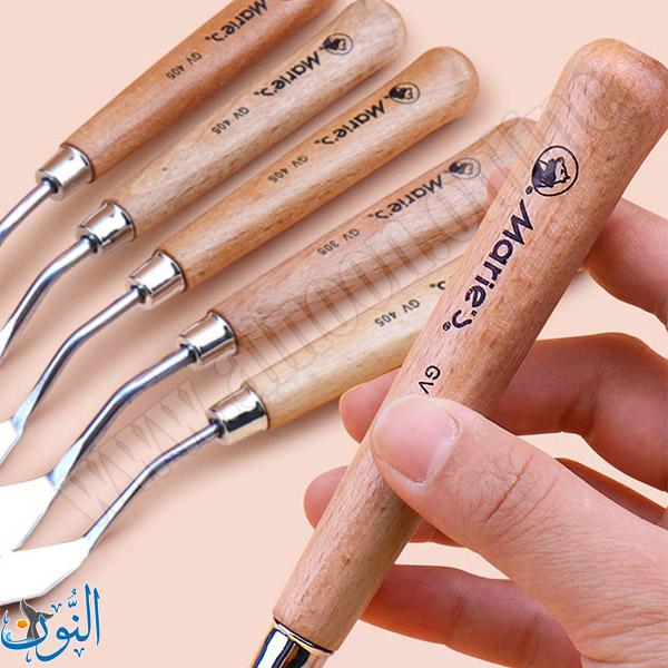 طقم سكاكين خلط ألوان من Maries يضم 5 قطع من فولاذ مقاوم للصدأ، بشفرات مرنة توفر تحكمًا دقيقًا وراحة أثناء الاستخدام. مثالي لمزج وتوزيع الألوان الزيتية والأكريليك وتقنيات القوام المختلفة